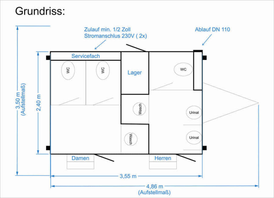 - Abwasseranschluss: HT/KG Rohr DN 110